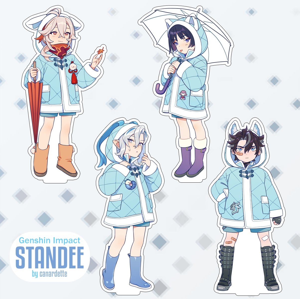 This product page includes Childe, Venti, Zhongli, Itto, Kaveh, Alhaitham, Kaeya, Diluc, Kazuha, Scaramouche, Wriothesley and Neuvilette. For other available characters, please go here..